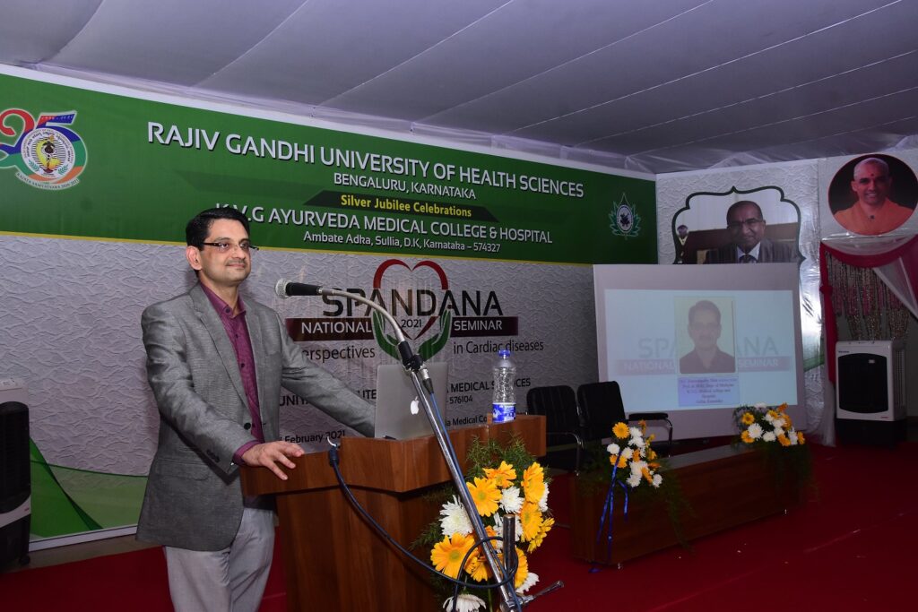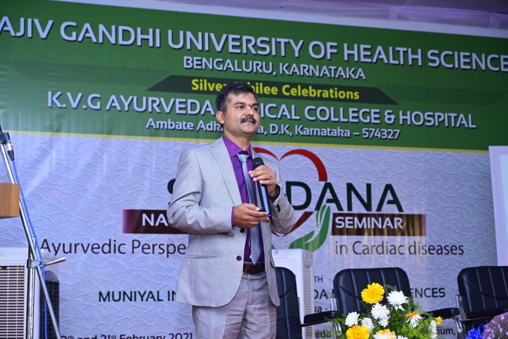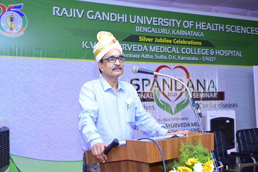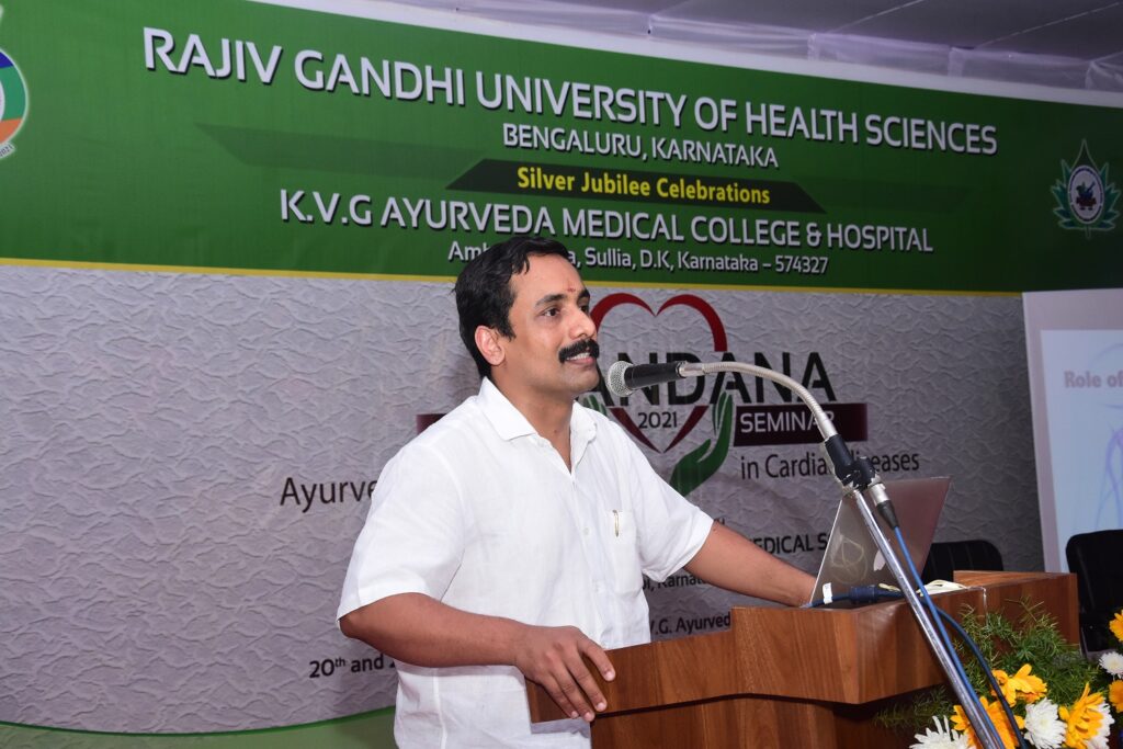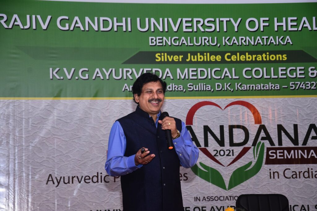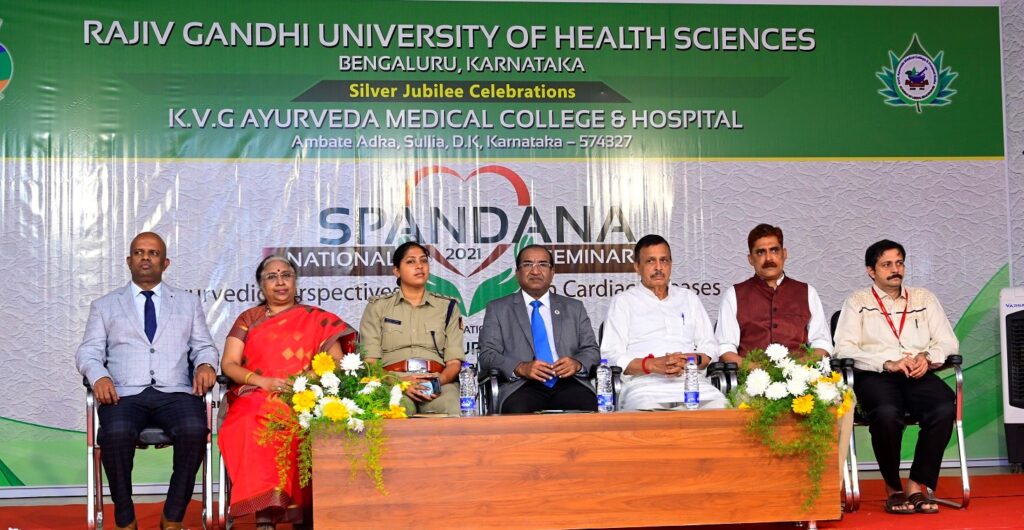 On the occasion of Silver Jubilee Celebration of Rajiv Gandhi Univercity of Health Sciences, Bengaluru, Karnataka. 2 days National Level Seminar on Ayurvedic Perspectives in Cardiac Diseases was held in K.V.G. Ayurveda Medical College and Hospital, Sullia, D.K. on 20th and 21st of February 2021.