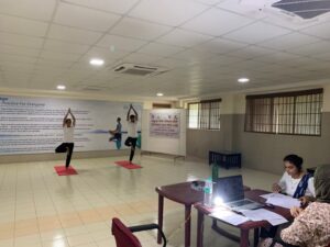 Our Specious Sanjeevini Yoga Hall with wide open facility for natural light and ventilation. It gives a delightful feeling of union with blossoming nature around. It is a perfect place to take you into a calm and serene journey, experience internal bliss, as you practice and perform the yoga postures, under the guidance of our Teacher. We conduct regular Yoga practice for IPD patients, according to their physical condition. Yoga is practiced in early morning by the Yoga Teacher.